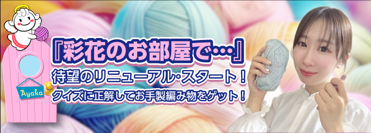 プレゼント企画 NEW 『彩花のお部屋で・・・』待望のリニューアル・スタート! クイズに正解してお手製編み物をゲット!